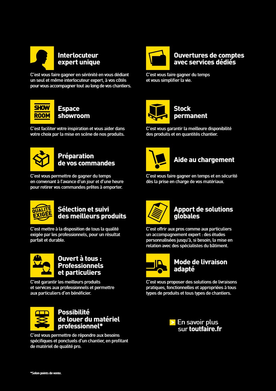 GROS ŒUVRE - COUVERTURE - ZINC - BOIS - ISOLATION - OUTILLAGE - QUINCAILLERIE - DÉCORATION - JARDIN - PLEIN AIR - CHAUFFAGE
