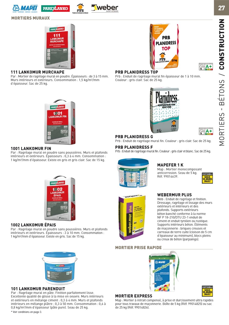 GROS ŒUVRE - COUVERTURE - ZINC - BOIS - ISOLATION - OUTILLAGE - QUINCAILLERIE - DÉCORATION - JARDIN - PLEIN AIR - CHAUFFAGE